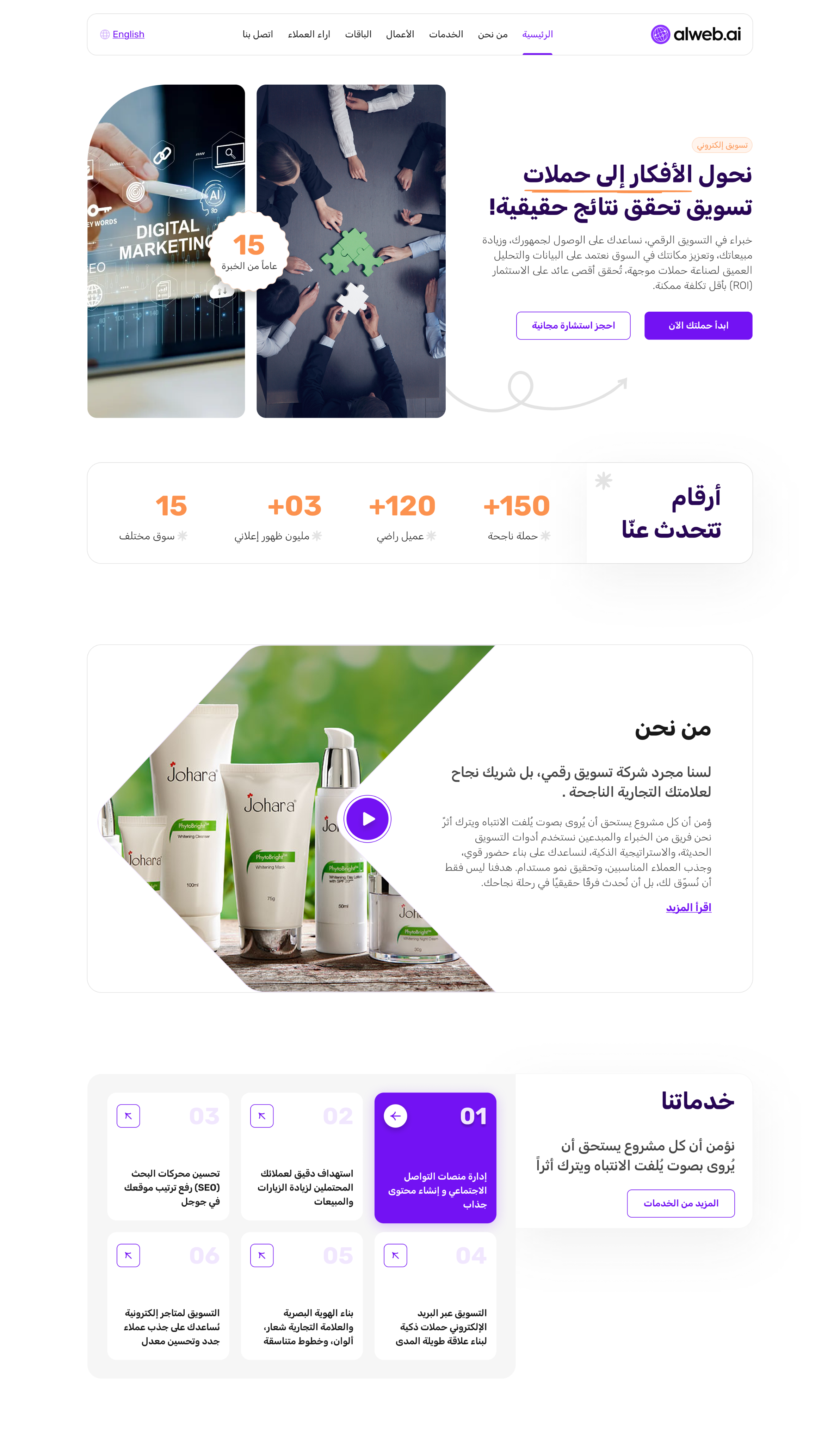 ؤمن أن كل مشروع يستحق أن يُروى بصوت يُلفت الانتباه ويترك أثرً نحن فريق من الخبراء والمبدعين نستخدم أدوات التسويق الحديثة،
